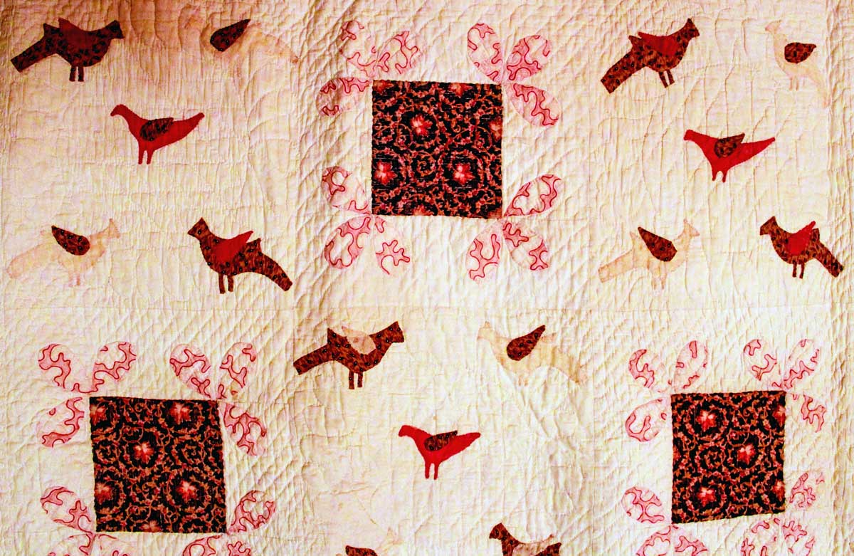 Detail of an 1870 Honey Bee “Birds and Bees” quilt. From the Sandra Starley collection. (Image courtesy of the author)